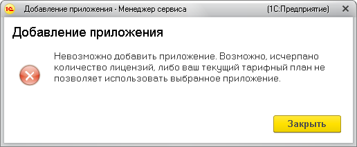 Наиболее часто встречающаяся причина невозможности добавить приложение — превышение количества приложений, разрешенного имеющимися у абонента подписками на тарифы сервиса. По тарифам разрешено использование только 10 приложений. Превышение за доп.плату.