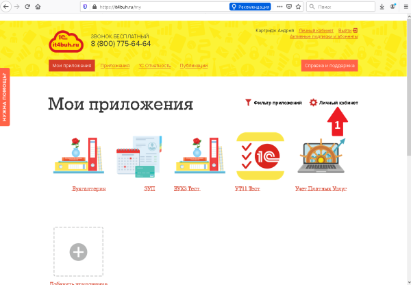 1. Войти в свой личный кабинет, например, щелкнув ссылку  Личный кабинет на странице Мои приложения сайта сервиса;